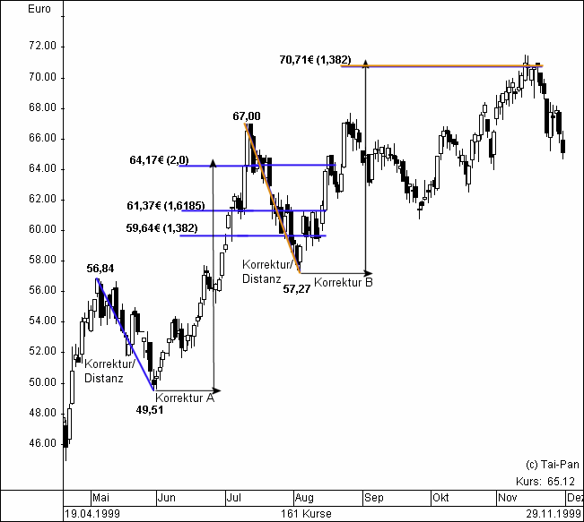 Beachten Sie bitte, daß die 0,382 und 0,6185 am aussagekräftigsten sind.