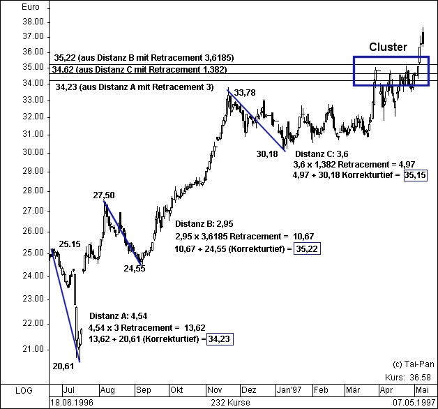 dann wird dies zu einer Bündelung von Retracements führen. Diese nennt man "Cluster"....