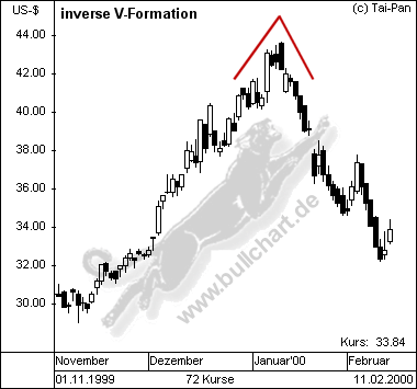In einem Aufwärtstrend wird sie als "inverse V-Formation" (V-Top) bezeichnet.