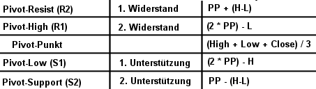 Daher werden die Pivot Points von Floor Tradern aus den USA angewendet, um mögliche Restistance/Supports